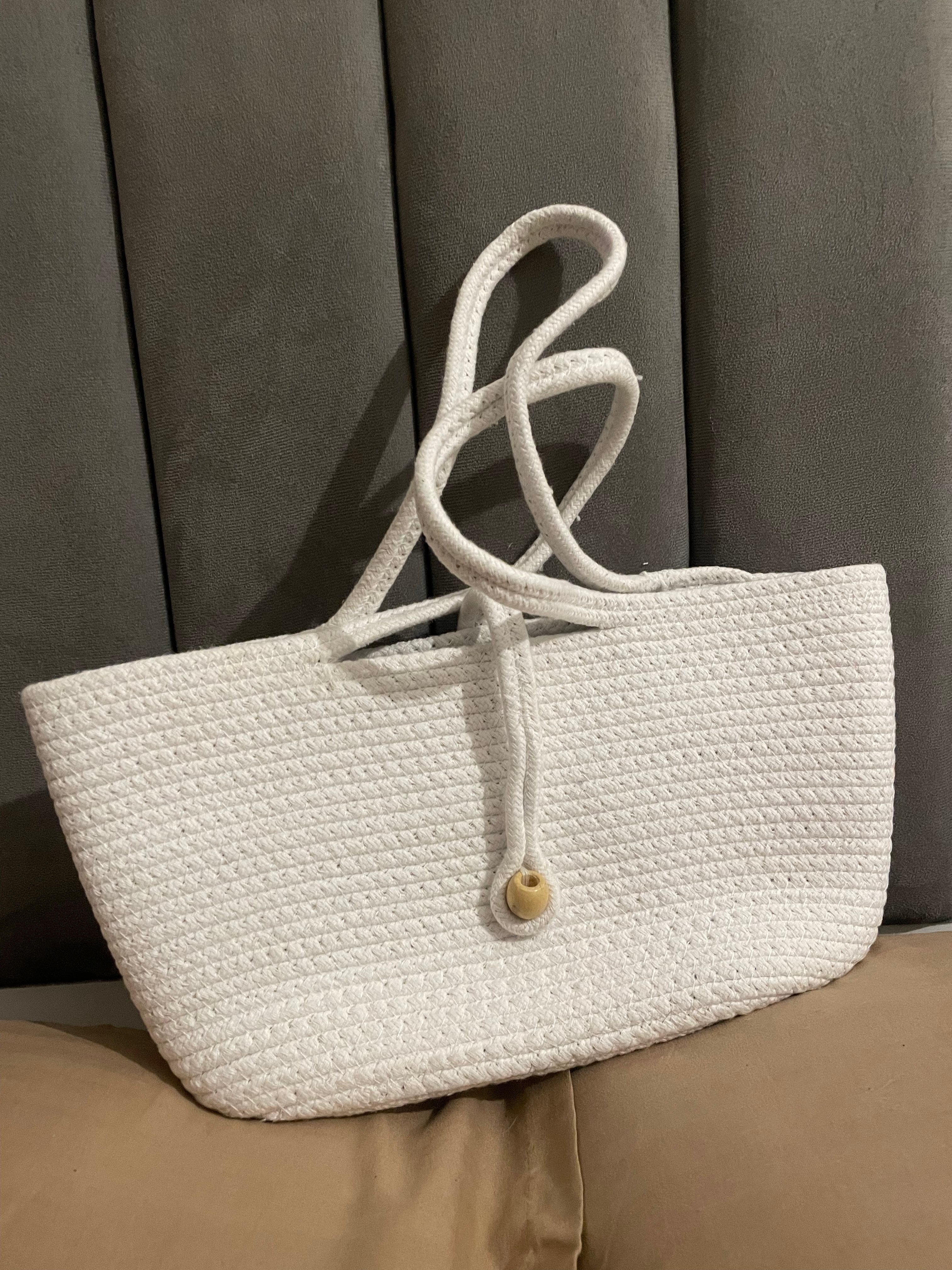 Beige and White Sea-Shell styled Rope Bag with Sling