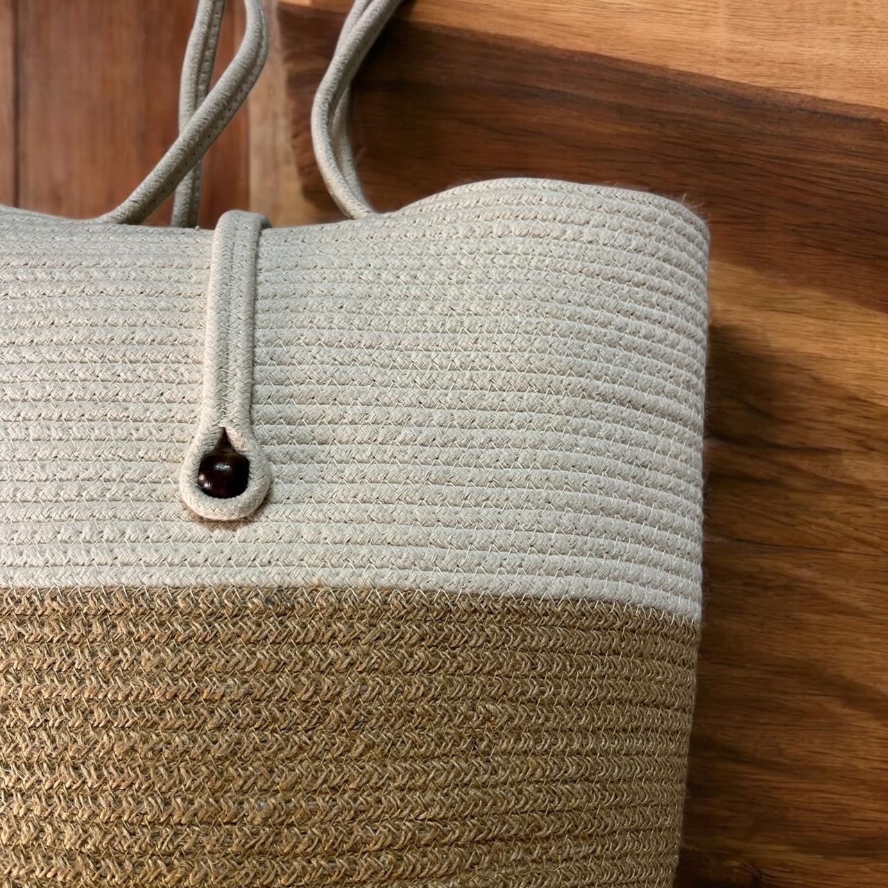 Introducing our stylish and sturdy Beige Off White Cotton Bag with Bead Lock by Yubi Sora. This versatile bag is made of high-quality cotton and features a convenient bead lock for added security. Its neutral beige and off-white color combination gives it a sleek and timeless look. The perfect accessory for any occasion.