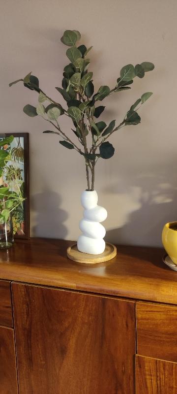 Introducing the Yubi Sora Artificial Leaf, crafted with luxurious eucalyptus and a vibrant green color. With a length of 65 cm and bendable steel wire in the stem, this lifelike leaf will remain fresh and beautiful for years to come. Use cutting pliers to adjust the stem's length, creating your desired look. Elevate your space with this elegant and exclusive piece.